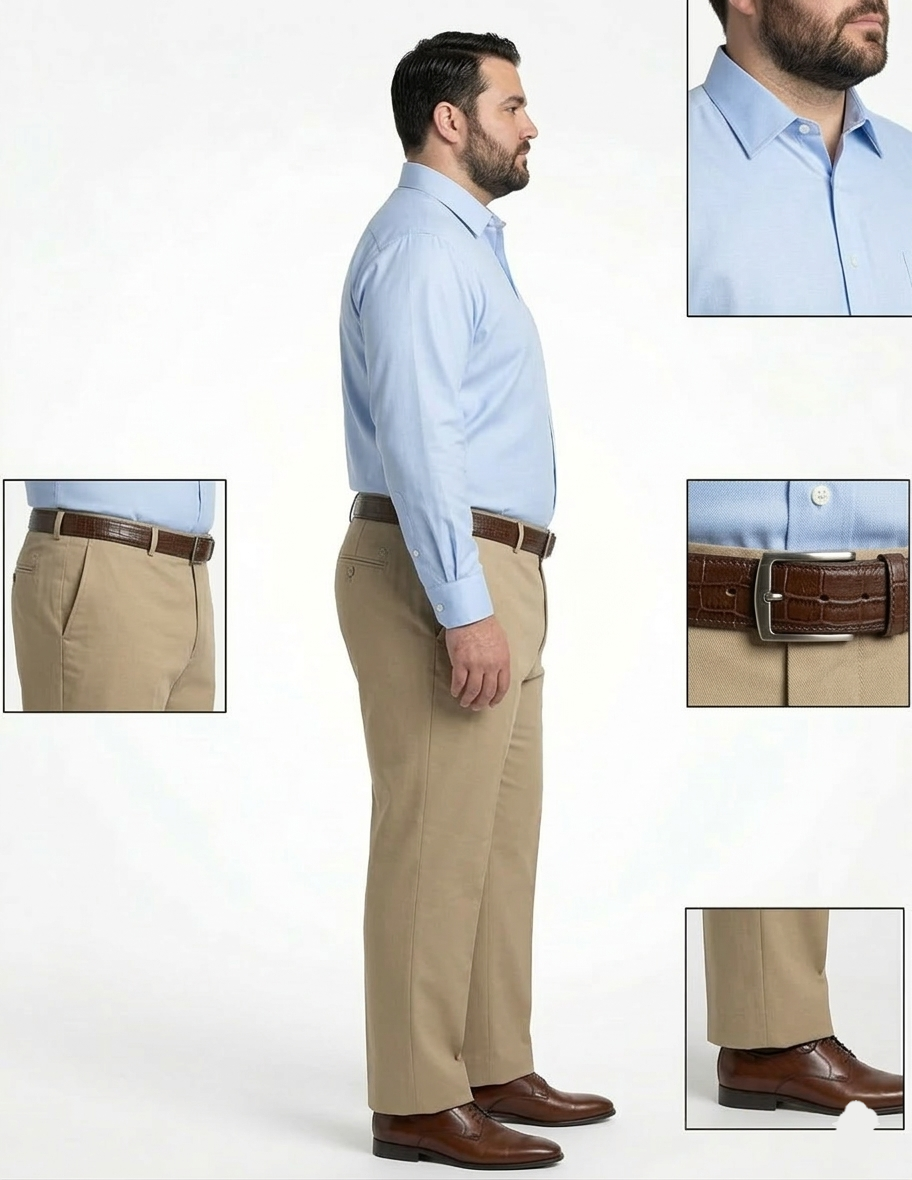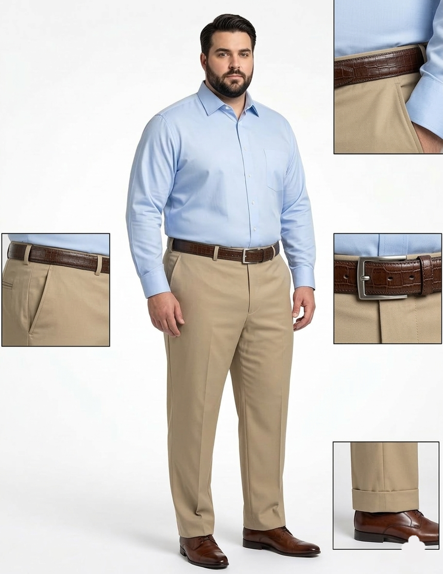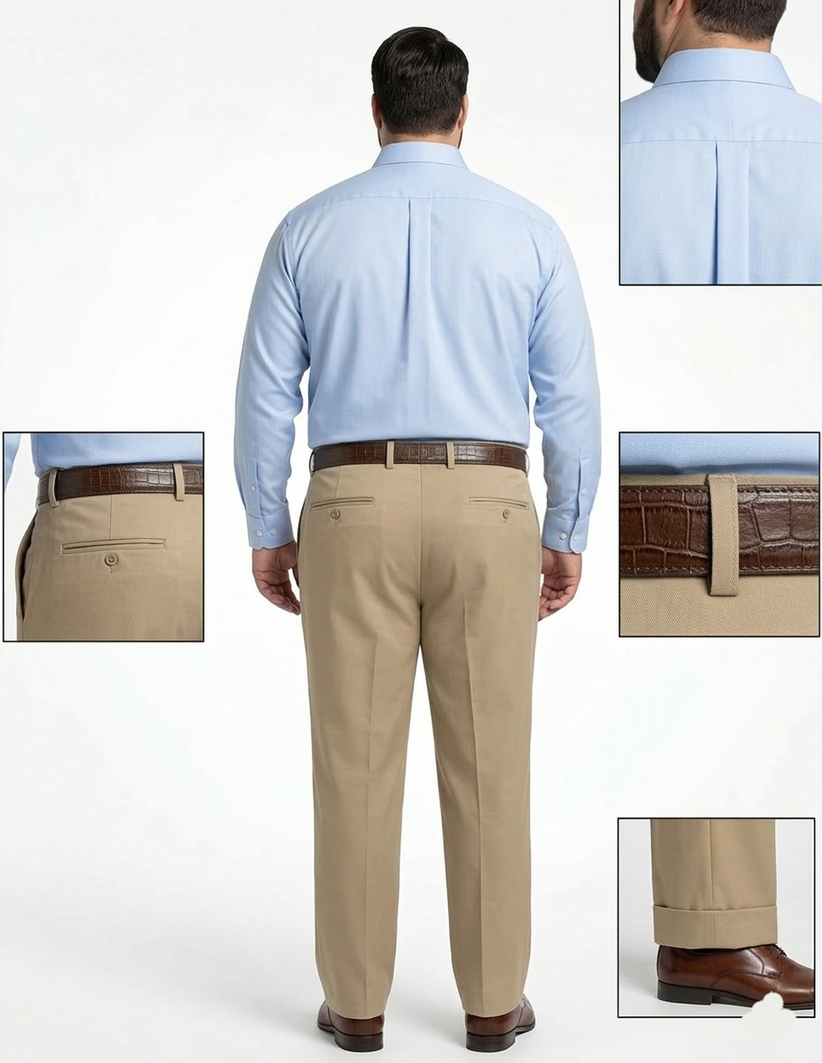 Our formal trousers are designed with the utmost attention to detail, taking into account the specific requirements of plus-size individuals. The tailored cut provides a flattering silhouette, while the adjustable waistband ensures a secure but relaxed fit. Engineered to deliver both practicality and style, this wardrobe essential is here to enhance your confidence and make a lasting impression.